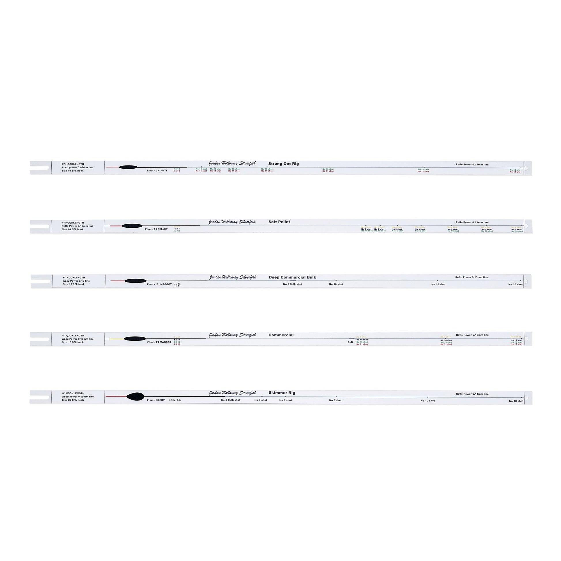 Rigmate Pro Rigstrips feature the exact shotting patterns used by star anglers, so you can replicate them on your own rigs. These Silverfish Rigstrips feature shotting patterns that Rigmate founder and all-round expert, Jordan Holloway, uses for his silverfish fishing. Like the standard Rigmate Rigstrips, they fit straight on the Rigmate Pro to make rig tying easy and quickly. As well as markers for shot location and size, each strip also features the line, float and hook that the star angler uses, so every little detail is covered. Supplied in a pack of five, each set comes with a plastic tube for easy storage.