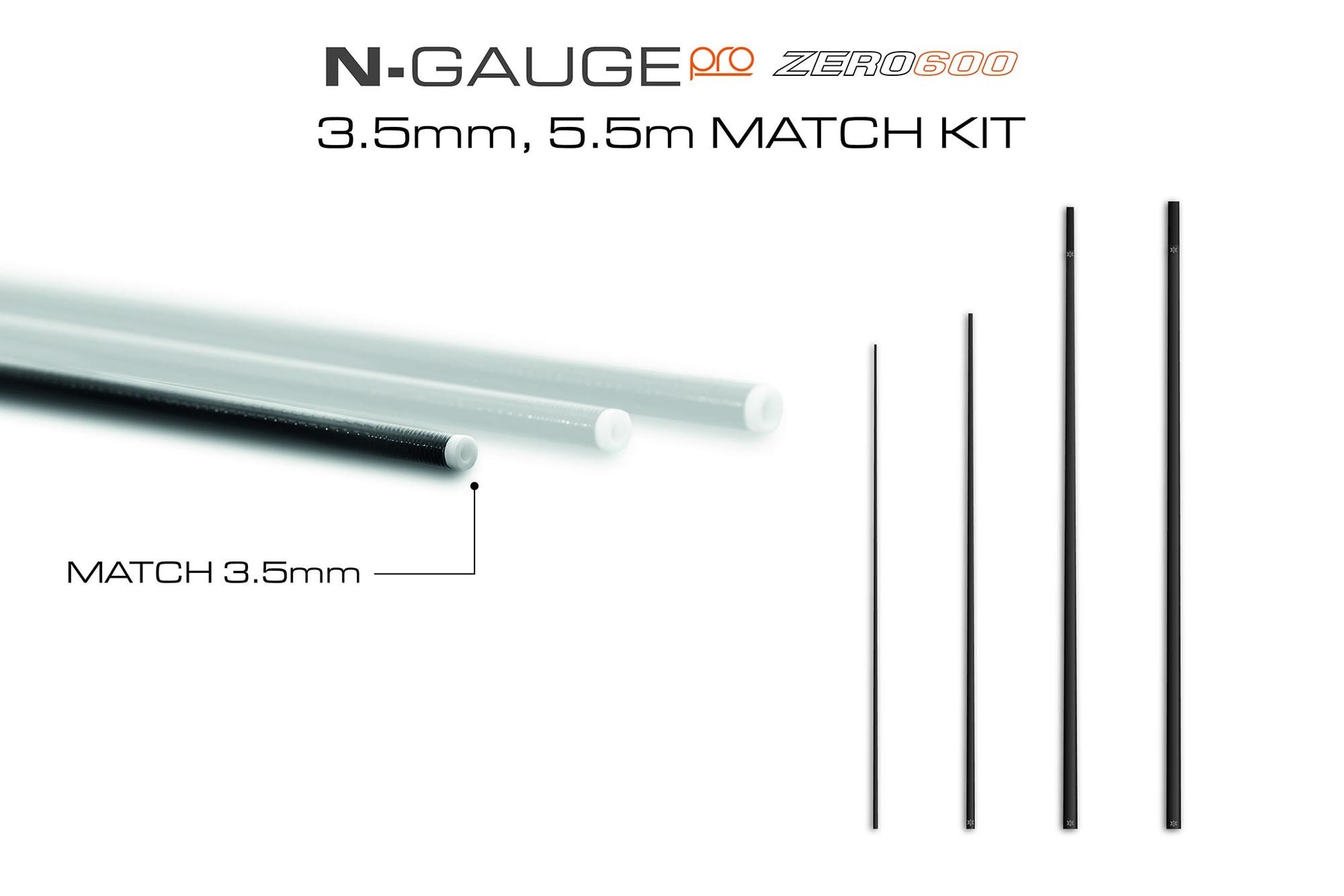 N-Gauge Pro Match Kit 3.5mm - Top 4 - 5.5m. These top kits are constructed from ZERO600 Tensile Carbon making them light and stiff with slimmer 3.5mm tips for thinner elastics perfect for all silver fish fishing.